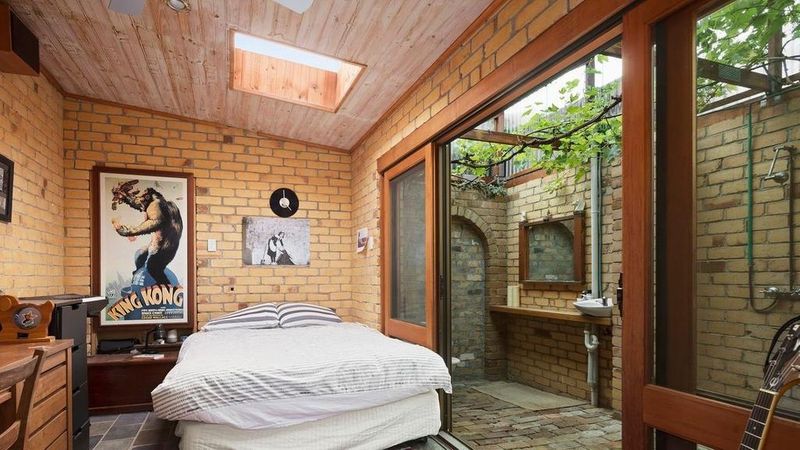 它还有一些怪癖,如卧室里的爪足蓝色浴缸和独立的工作室,有一个带半透明天花板的户外浴室和葡萄藤,增添了一抹绿色。