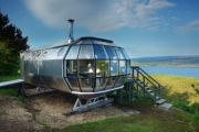 AirShip 002是由Roderick James Architects设计的隔热铝合金吊舱,配有厨房厨房,双人卧室,阳台和带淋浴的浴室。休息区环绕着环绕式玻璃面板,可欣赏到全景和海景。