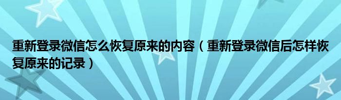 重新登录微信怎么恢复原来的内容(重新登录微信后怎样恢复原来的记录)