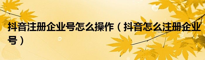 抖音注册企业号怎么操作(抖音怎么注册企业号)