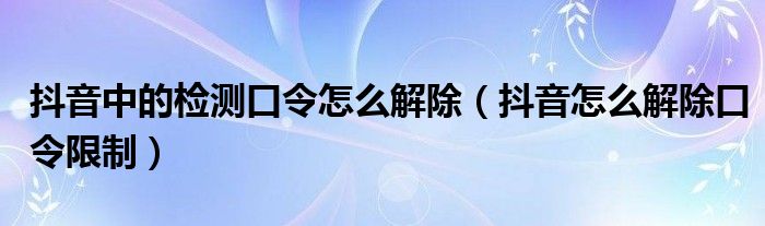 抖音中的检测口令怎么解除(抖音怎么解除口令限制)
