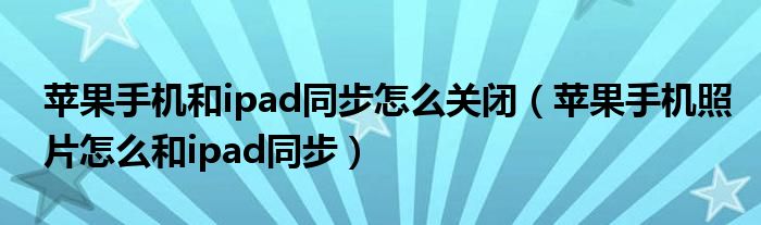 苹果手机和ipad同步怎么关闭(苹果手机照片怎么和ipad同步)