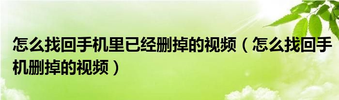 怎么找回手机里已经删掉的视频(怎么找回手机删掉的视频)