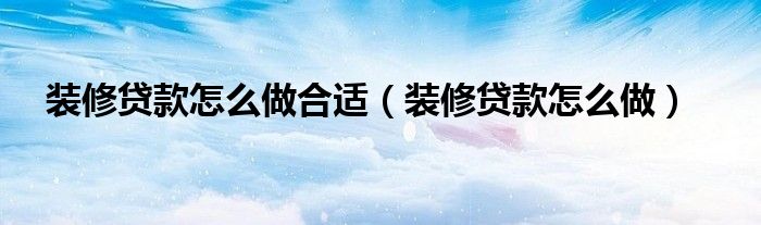 大家好,熊三为你解答上述问题。不少朋友还不知道,装修贷款怎么做合适,装修贷款怎么做现在让我们一起来看看如何解决吧!
