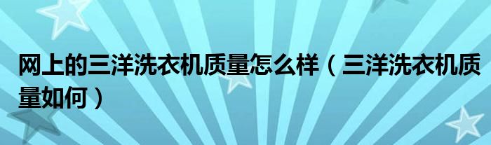 网上的三洋洗衣机质量怎么样(三洋洗衣机质量如何)