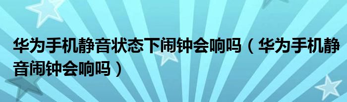 华为手机静音状态下闹钟会响吗(华为手机静音闹钟会响吗)