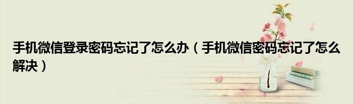 手机微信登录密码忘记了怎么办(手机微信密码忘记了怎么解决)