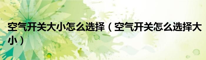 空气开关大小怎么选择(空气开关怎么选择大小)