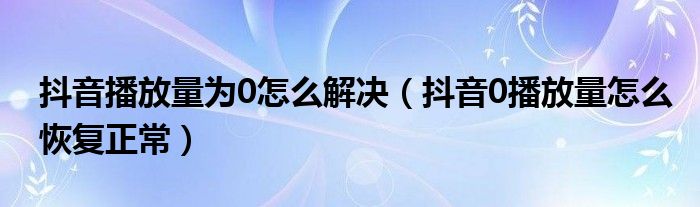 抖音播放量为0怎么解决(抖音0播放量怎么恢复正常)