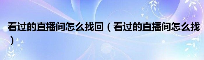 导读 大家好,熊熊来为大家解答以的上问题。看过的直播间怎么找回,看过的直播间怎么找这个很多人还不知道,现在让我们一起来看看了解下吧!