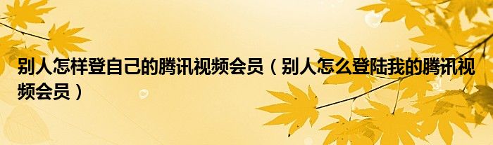 别人怎样登自己的腾讯视频会员(别人怎么登陆我的腾讯视频会员)