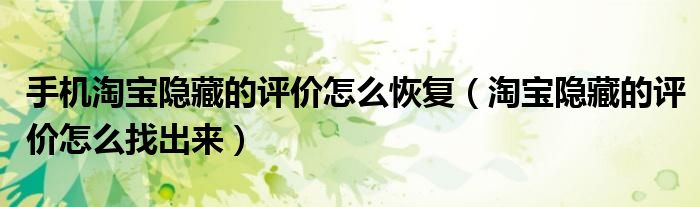 手机淘宝隐藏的评价怎么恢复(淘宝隐藏的评价怎么找出来)