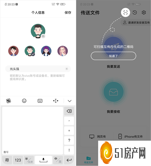 进入旧手机互传界面后,选择“一键更换”标签,然后点击“我是旧手机”。相互传输会自动生成二维码供其他设备扫描连接。(如果你的旧手机不互通,也可以进入vivo应用商店或百度搜索安装。)