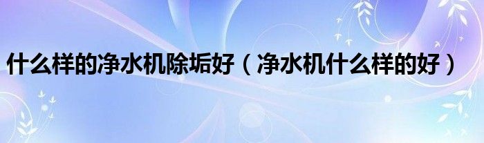 大家好,熊三为你解答上述问题。不少朋友还不知道,什么样的净水机除垢好,净水机什么样的好现在让我们一起来看看如何解决吧!