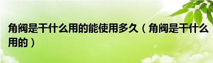 角阀是干什么用的能使用多久(角阀是干什么用的)