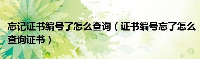 忘记证书编号了怎么查询(证书编号忘了怎么查询证书)