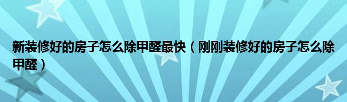 新装修好的房子怎么除甲醛最快(刚刚装修好的房子怎么除甲醛)