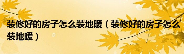 装修好的房子怎么装地暖(装修好的房子怎么装地暖)