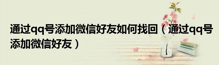 通过qq号添加微信好友如何找回(通过qq号添加微信好友)