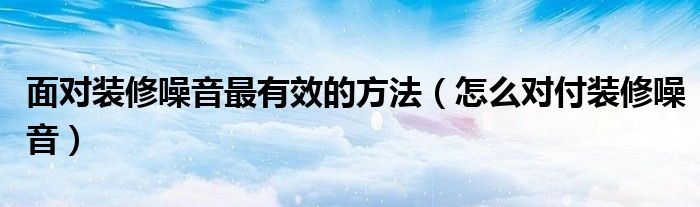 面对装修噪音最有效的方法(怎么对付装修噪音)