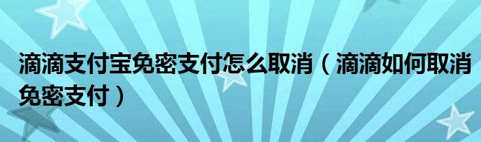 滴滴支付宝免密支付怎么取消(滴滴如何取消免密支付)