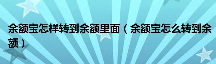 余额宝怎样转到余额里面(余额宝怎么转到余额)