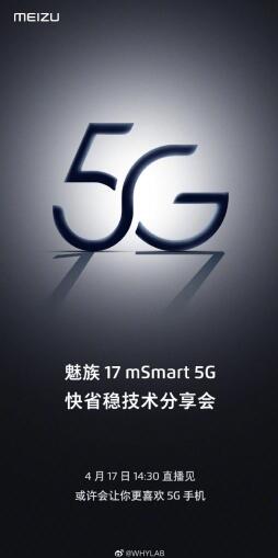 公司今天发布的海报确认魅族17发布会将于4月17日2:30举行。公司用“mSmart 5G”这个词来形容魅族17的5G功能。