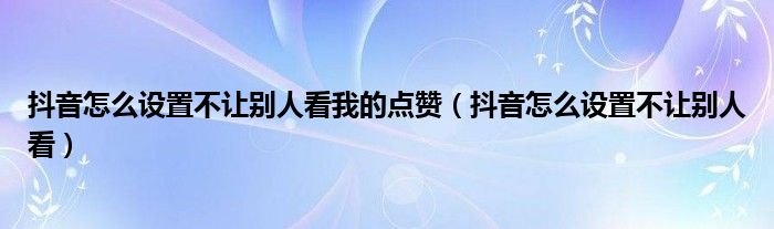 抖音怎么设置不让别人看我的点赞(抖音怎么设置不让别人看)