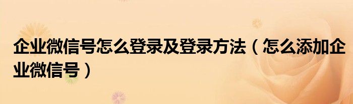 企业微信号怎么登录及登录方法(怎么添加企业微信号)