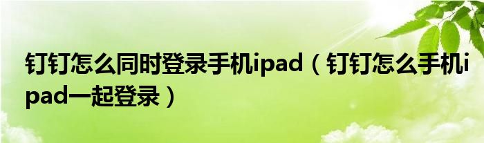 导读 大家好,熊熊来为大家解答以的上问题。钉钉怎么同时登录手机ipad,钉钉怎么手机ipad一起登录这个很多人还不知道,现在让我们一起来看看了解
