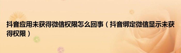导读 大家好,熊熊来为大家解答以的上问题。抖音应用未获得微信权限怎么回事,抖音绑定微信显示未获得权限这个很多人还不知道,现在让我们一起来