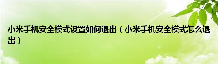 小米手机安全模式设置如何退出(小米手机安全模式怎么退出)