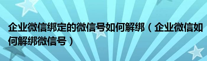 企业微信绑定的微信号如何解绑(企业微信如何解绑微信号)