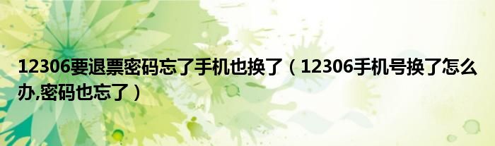 导读 大家好,熊熊来为大家解答以的上问题。12306要退票密码忘了手机也换了,12306手机号换了怎么办,密码也忘了这个很多人还不知道,现在让我们