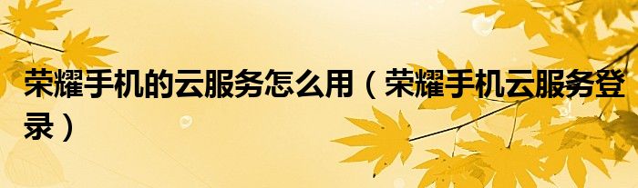 导读 大家好,熊熊来为大家解答以的上问题。荣耀手机的云服务怎么用,荣耀手机云服务登录这个很多人还不知道,现在让我们一起来看看了解下吧!