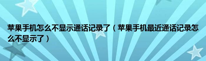 苹果手机怎么不显示通话记录了(苹果手机最近通话记录怎么不显示了)
