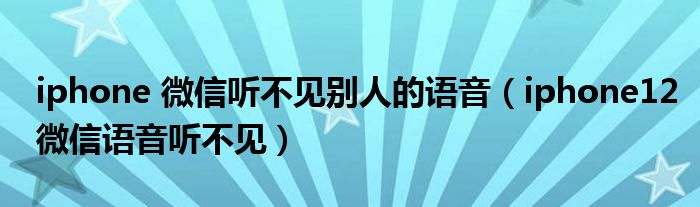 iphone 微信听不见别人的语音(iphone12微信语音听不见)