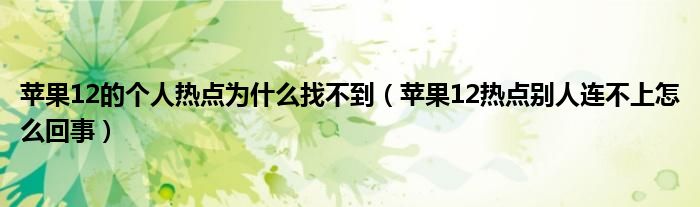 苹果12的个人热点为什么找不到(苹果12热点别人连不上怎么回事)