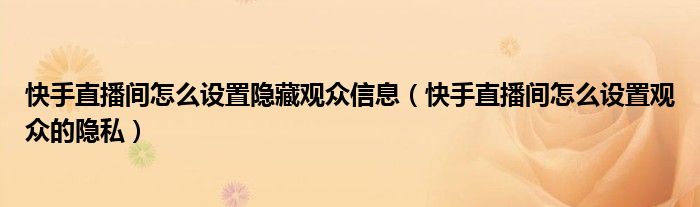 快手直播间怎么设置隐藏观众信息(快手直播间怎么设置观众的隐私)