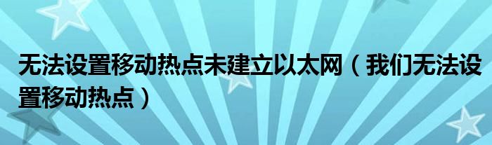 无法设置移动热点未建立以太网(我们无法设置移动热点)