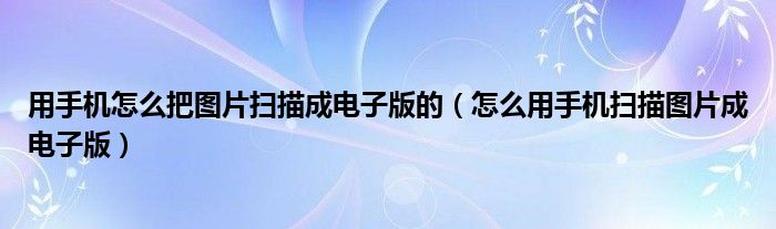 用手机怎么把图片扫描成电子版的(怎么用手机扫描图片成电子版)