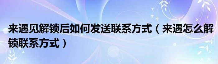 来遇见解锁后如何发送联系方式(来遇怎么解锁联系方式)