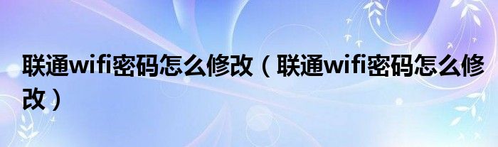 联通wifi密码怎么修改(联通wifi密码怎么修改)