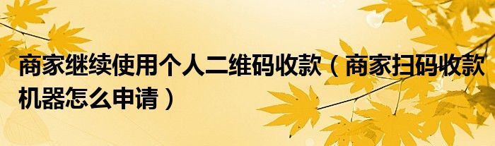 导读 大家好,熊熊来为大家解答以的上问题。商家继续使用个人二维码收款,商家扫码收款机器怎么申请这个很多人还不知道,现在让我们一起来看看了
