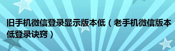 旧手机微信登录显示版本低(老手机微信版本低登录诀窍)