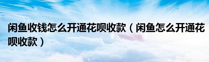 闲鱼收钱怎么开通花呗收款(闲鱼怎么开通花呗收款)