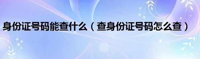 导读 大家好,熊熊来为大家解答以的上问题。身份证号码能查什么,查身份证号码怎么查这个很多人还不知道,现在让我们一起来看看了解下吧!