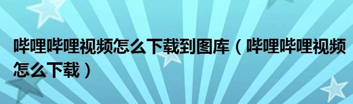 哔哩哔哩视频怎么下载到图库(哔哩哔哩视频怎么下载)