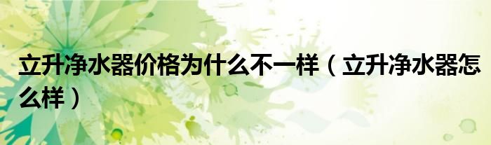 立升净水器价格为什么不一样(立升净水器怎么样)
