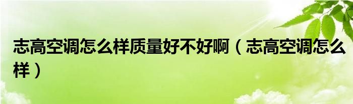 志高空调怎么样质量好不好啊(志高空调怎么样)